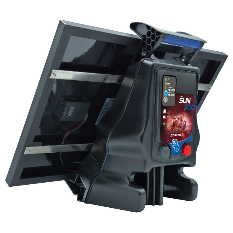 Kompaktes Solarstromgerät 33W, 11600V,3J mit automatischer Steuerung der Autonomie. Er ist sofort einsatzbereit und sehr leicht, lässt sich mühelos bewegen und stößt dank seiner optimierten Ergonomie nicht in die Beine . Schutz des Panels im Falle eines Sturzes. Möglichkeit, es am Boden oder an Y/T- oder Holzpflöcken zu befestigen . Batterie mit hoher Kapazität (18 Ah). Werkzeugloser Zugang zur Batterie. Eine Klinkenbuchse zum Aufladen des Akkus.