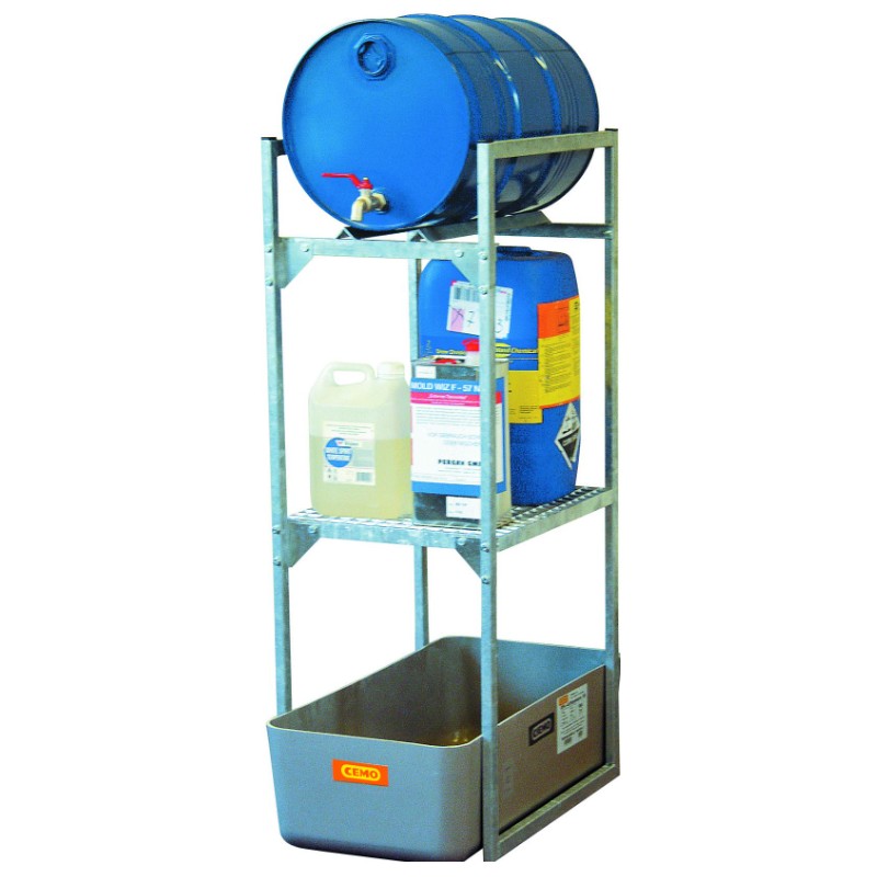 Für die vorschriftsmäßige und platzsparende Lagerung von Fässern und anderen Gebinden. Alle Regale sind komplett feuerverzinkt und besitzen eine absolut korrosionsfeste Auffangwanne für einen langfristigen, sicheren Einsatz. Aufgrund der absoluten Korrosionsbeständigkeit dürfen Auffangwannen direkt auf dem Boden aufgestellt werden. Die niedrige Bauhöhe vereinfacht das Handling in den Betrieben. Die verschiedenen Regalvarianten ermöglichen, auch für die unterschiedlichsten Gebinde und Behälter, das Abfüllen über der vorstehenden Auffangwanne. Damit ist eine optimale Anpassung an die jeweiligen betrieblichen Bedingungen gewährleistet. Belastbarkeit pro Ebene 80 kg.