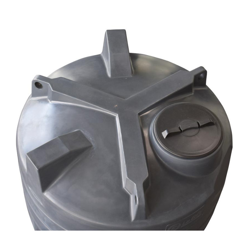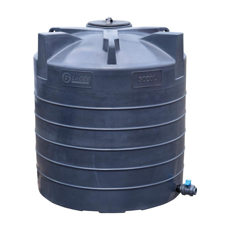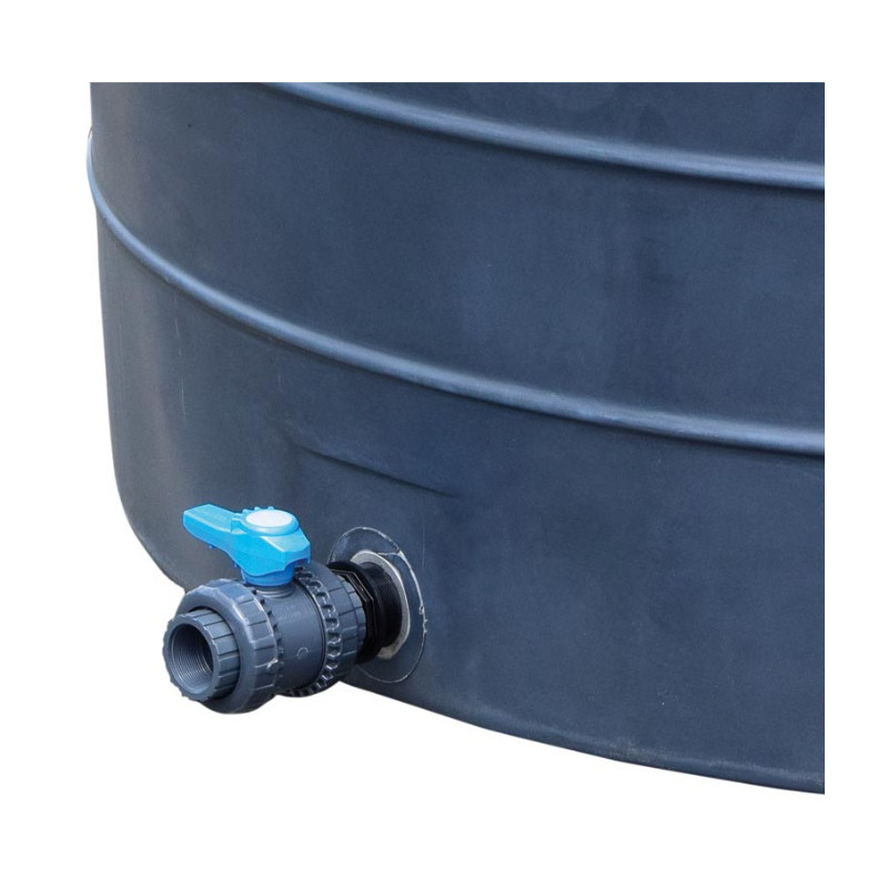 OberirdischerTank, der für die Regenwassernutzung oder die Lagerung von Flüssigkeiten mit einer maximalen Dichte von zu 1,2 entwickelt wurden. Diese Tanks sind aus Kunststoff (hochdichtem Polyethylen) rotationsgeformt, UV- und frostbeständig, unverweslich und Desinfektions- und Reinigungsmittelsbeständig. Ihre undurchsichtige Farbe begrenzt die Auswirkungen von UV-Strahlen auf die Temperatur der gelagerten Flüssigkeiten, was Algenbildung vermeidet. Die Tanks sind Monoblock und verfügen über eine in den Deckel eingesetzte Belüftung im oberen Bereich. Sie verfügen über ein Vierteldrehungsventil, dessen Durchmesser je nach Ausführung unterschiedlich ist und über eine nicht durchgehende Vorrüstung für die optionale Aufnahme eines zweiten Ventils.