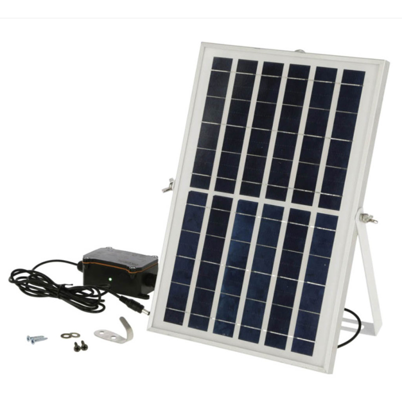 Solar-Akku-Set für automatische Hühnertür Wandeln Sie Ihre automatische Hühnertüre komplett um - nie wieder Batterien wechseln. Für den Außenbereich geeignet. 7 Sonnentage pro Jahr reichen für einen ungefährdeten Dauerbetrieb. Eine LED zeigt an, wenn die Sonneneinstrahlung für den Ladevorgang ausreichend ist. Mit 5 m Kabel für eine flexible Installation geliefert. Montagekit inklusive. Für den Außenbereich geeignet. Anwendbar ab Version 1.3 der automatischen Hühnertür. Abmessungen : L 34,7 x B 23,5 x H 1,7 cm Gewicht : 1,20 kg