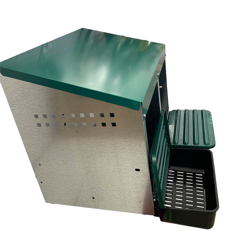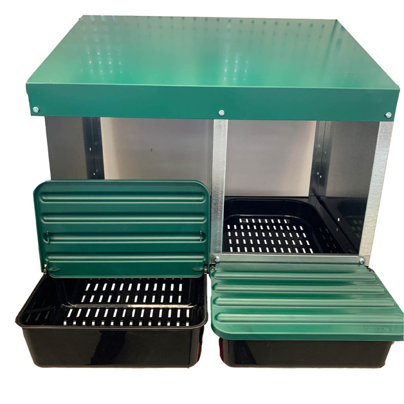 Legenest mit verzinkten Seitenteilen und Kunststoffboden. Bietet Hühnern eine saubere Umgebung zum Legen der Eier. Legenest mit Inspektionsklappe und geneigtem Boden zum leichten Entnehmen der Eier. Leichte Reinigung durch herausnehmbaren Boden. Zum Stellen oder Aufhängen geeignet. Zerlegt gliefert. L 53 x B 52 x H 43,5 cm 5 kg