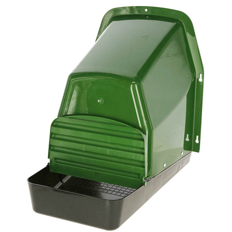Kunststoff-Legenest für den Außenbereich. Ermöglicht die Eierentnahme ohne den Hühnerstall zu betreten. Mit Inspektionsklappe und geneigtem Boden zum leichten Entnehmen der Eier. Befestigung außen am Hühnerstall. Unmontiert geliefert. L 37 x B 44 x H 49,5 cm 1,15 kg