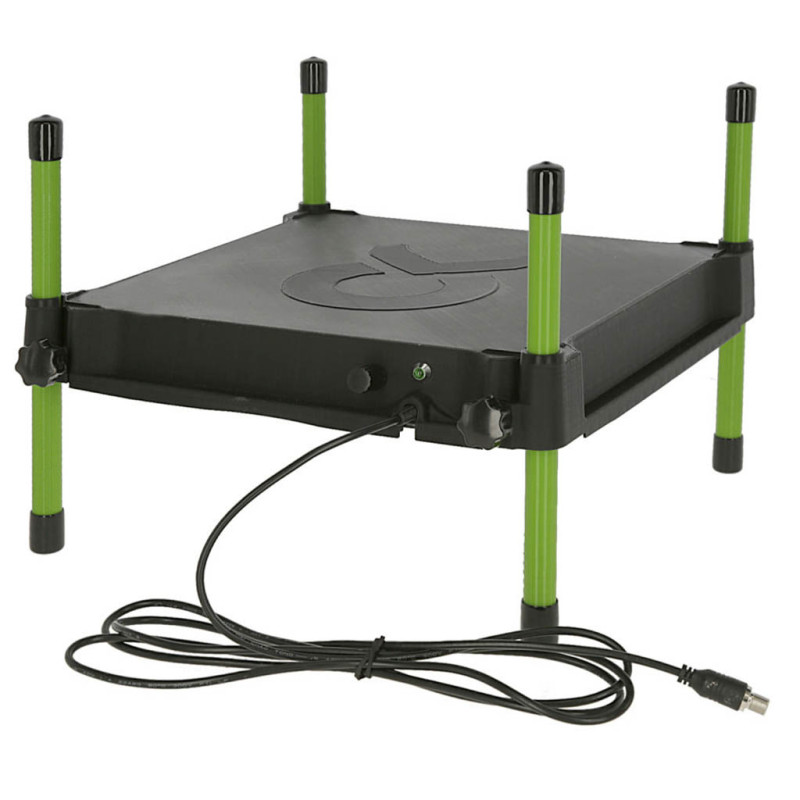 Diese Wärmeplatte funktioniert nach dem Vorbild des Federkleides der Mutterhenne. Sie heizt bis zum Erreichen der benötigten Temperatur und hält diese aufrecht. Die Küken schlüpfen unter die Platte und ruhen in der kuscheligen Wärme darunter. Bestens geeignet für die Kükenaufzucht. Mit den höhenverstellbaren Standbeinen einfach an die Größe der Küken anpassen. Temperaturanpassung mittels integriertem Drehknopf. Isolierung für gezielte Wärmeableitung nach unten Energiesparend und effizienter als herkömmliche Wärmestrahler Sicherer 24 Volt Betrieb - mit Netzteil für Anschluss an 230 Volt Stromversorgung Für 25 Küken Heizleistung 25 W 30 x 30 cm