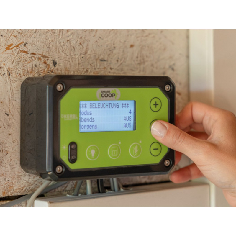 Beleuchtet den Stall nach individuellen Einstellungen und sorgt für einen gesunden Tag-Nacht-Rhythmus. Konstante Tageslichtphase fördert Legeleistung und Gesundheitszustand der Tiere. Tagesaktuelle Berechnung der Beleuchtungsdauer in Abhängigkeit der Jahreszeit oder benutzerdefiniert programmierbar. Gedimmtes Ein-/Ausschalten. Inkl. 100 cm Anschlusskabel zur Verbindung mit der SmartCoop Steuerung 4.6518 Max. 3 LED-Leuchten in Reihe schaltbar. Ausleuchtungsbereich je LED: 2 m². Steuerung 4.6518 erforderlich