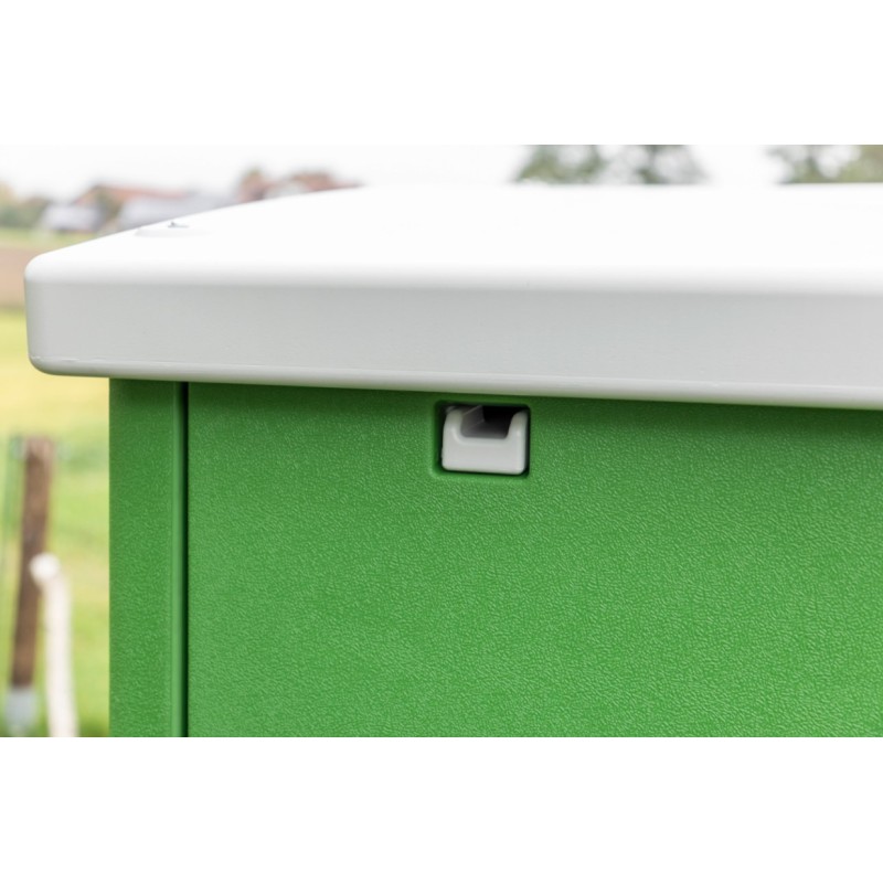 Einfache Montage durch fest montierte Gewindeeinsätze. Mit hochwertigen, langlebigen Schrauben und Beschlägen. Glatte Oberflächen erschweren der roten Vogelmilbe das Einnisten.
