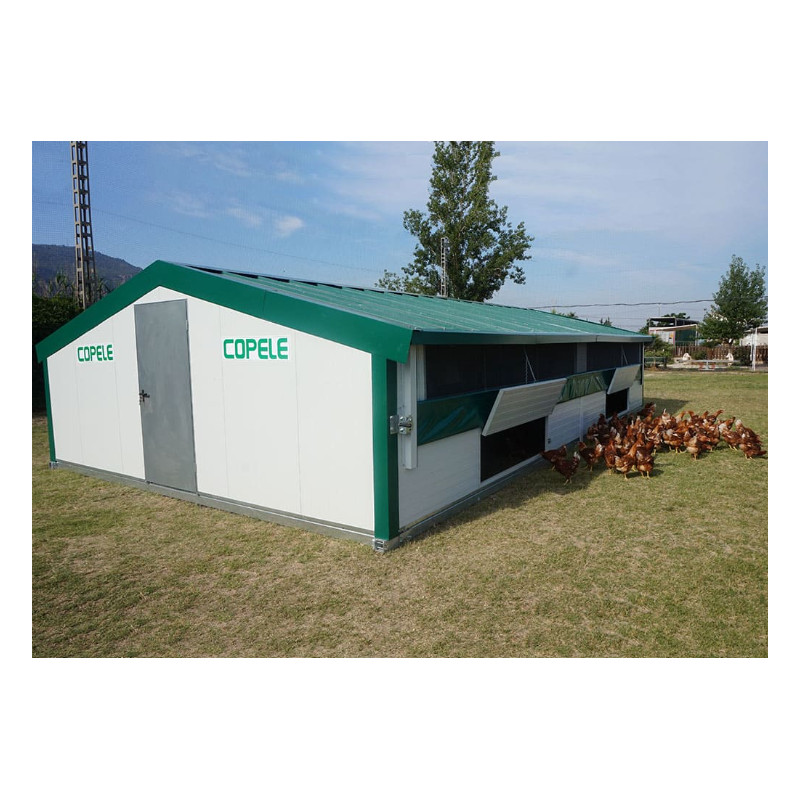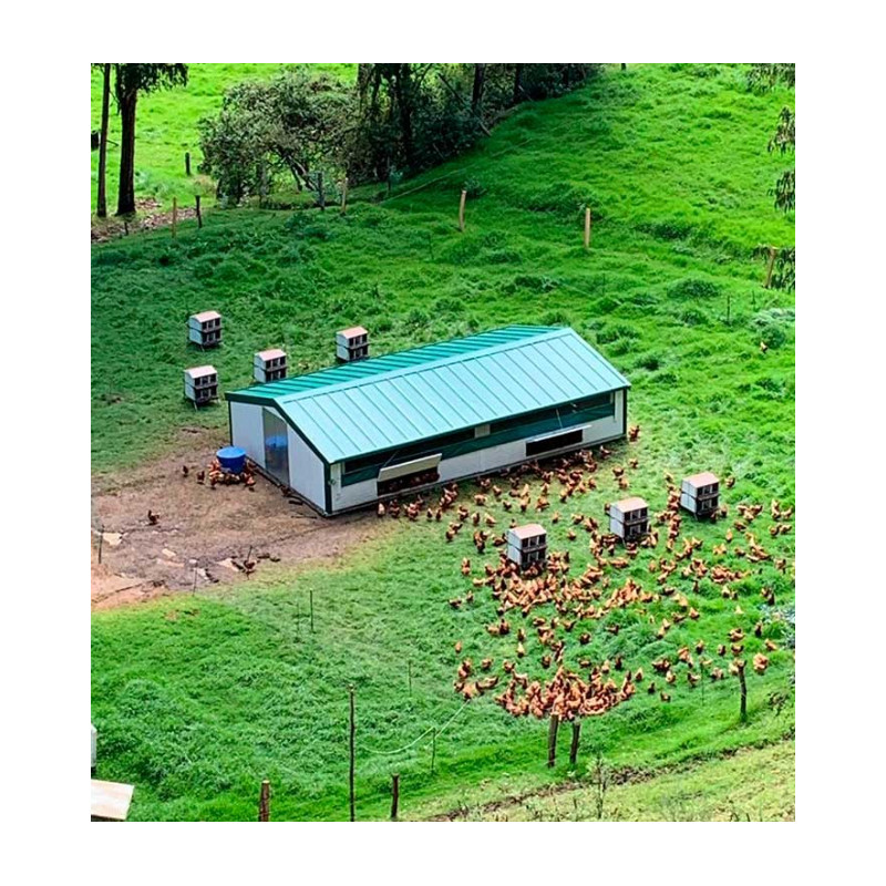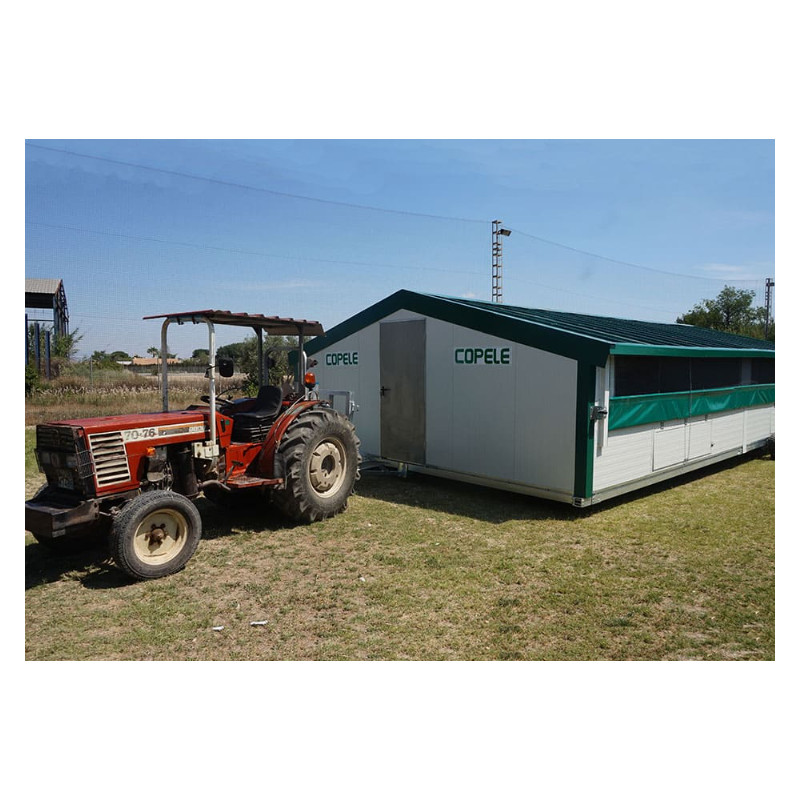 Das Mobile Gebäude von COPELE erleichtert die biologische Produktion von Fleisch und Eiern, indem es den Hühnern ermöglicht, in einer natürlichen Umgebung zu grasen.