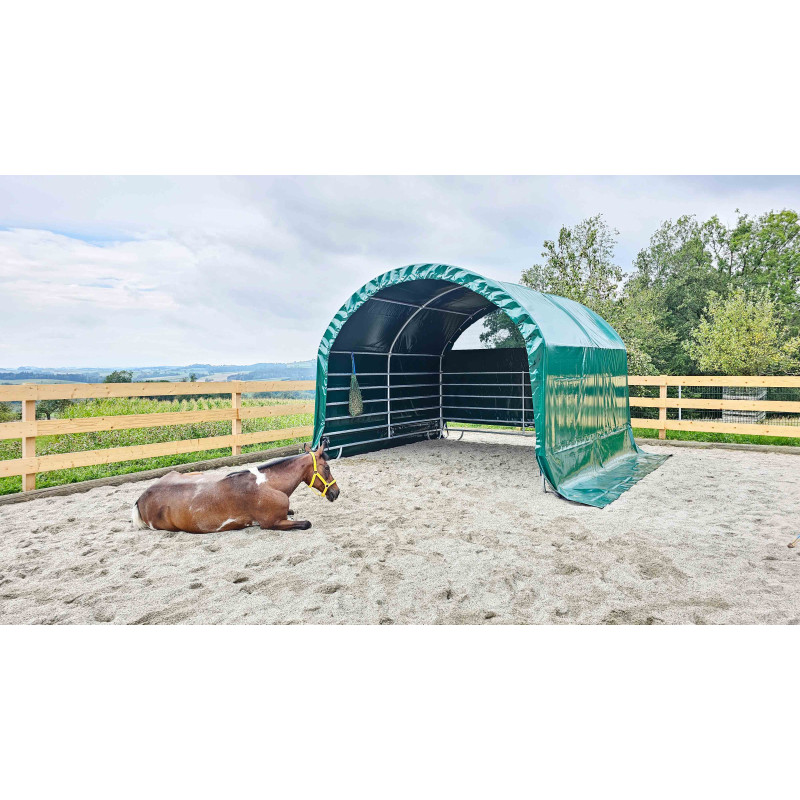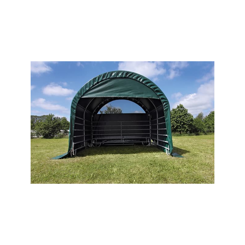 Die lange Dachplane besteht aus einer PVC-Gewebemembran mit einem Gewicht von ca. 670 g/m2. Dachplanenbefestigung mit Gurten. 4 x 4 m (Breite x Länge) Gewicht: 27 kg