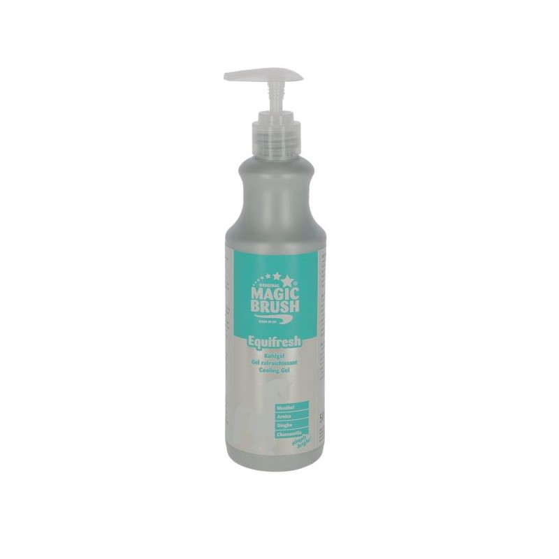 Kühlgel Equifresh mit Arnika, Menthol, Gingko und Kamille. Kühlt und erfrischt müde Pferdebeine, Sehnen, Gelenke und Muskeln. Sofort nach dem Training oder Ausritt aufgetragen zieht es schnell ein und hinterlässt keine Rückstände am Fell. Empfohlen für Pferd und Reiter.
