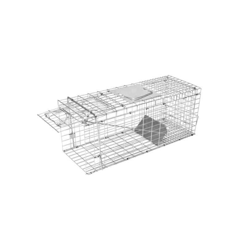 Klappbare und robuste Kastenfalle mit 1 Eingang für Kleintiere wie Katzen, Ratten, Marder, Kaninchen oder ähnliches. Aus verzinktem und stabilem Drahtgeflecht für lange Haltbarkeit. Bitte beachten Sie die regionalen Jagdvorschriften zur Lebendjagd! 78 x 28 x 32 cm
