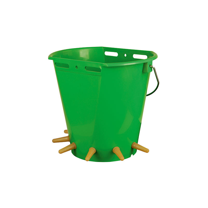 Kunststoff Lämmereimer für die Fütterung von bis zu 6 Lämmern. Komplett mit Halteblech, Saugern und Ventilen. Lebensmittelecht, beidseitig abgeflacht, verstärkte Ausführung. 0.8 kg