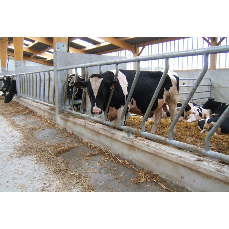 Fressgitter schräg 5 Plätze auf 3m unterbinden Futter Verschwendung. Lieferung mit 4 ausziehbaren Endlaschen. Nicht für Mast und Bullenkälber geeignet. Pfosten und Halterungen nicht inkl. 36 kg
