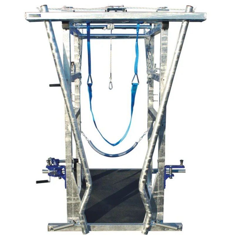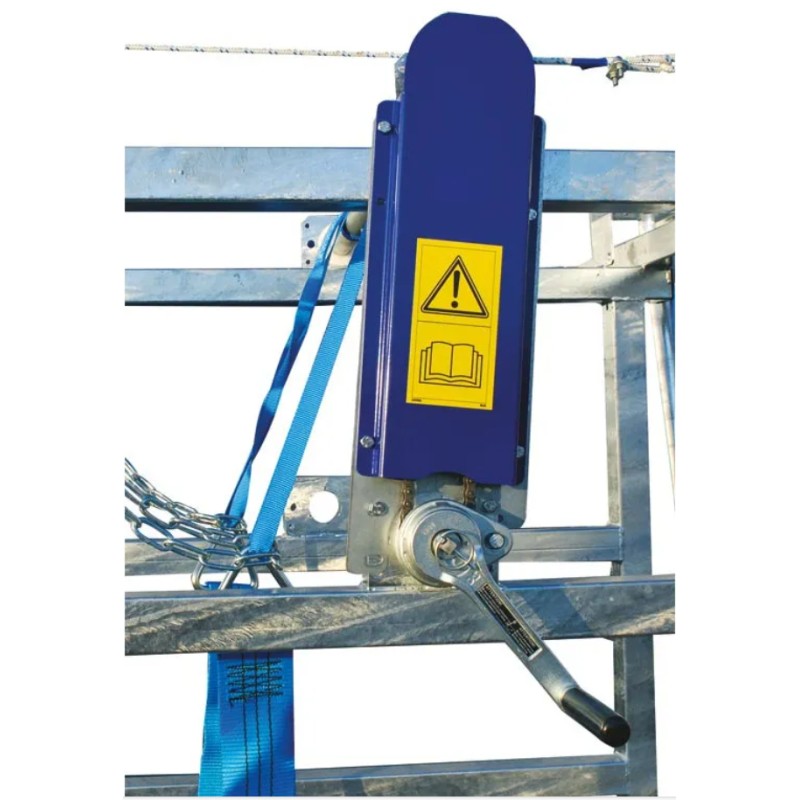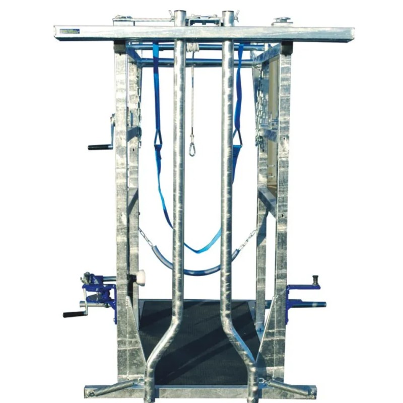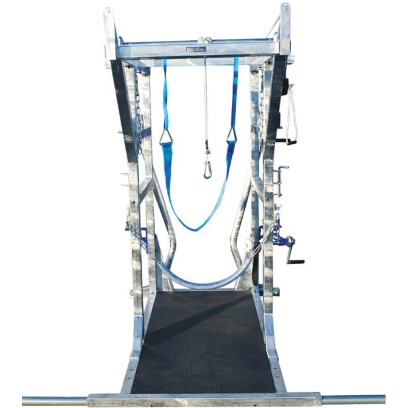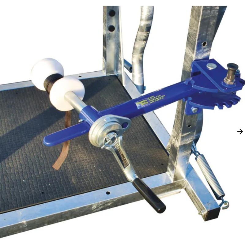 Système de pignons à chaîne, 1 pour pattes arrière et 1 pour la sangle sous ventrière actionné avec un moulinet auto-freiné.