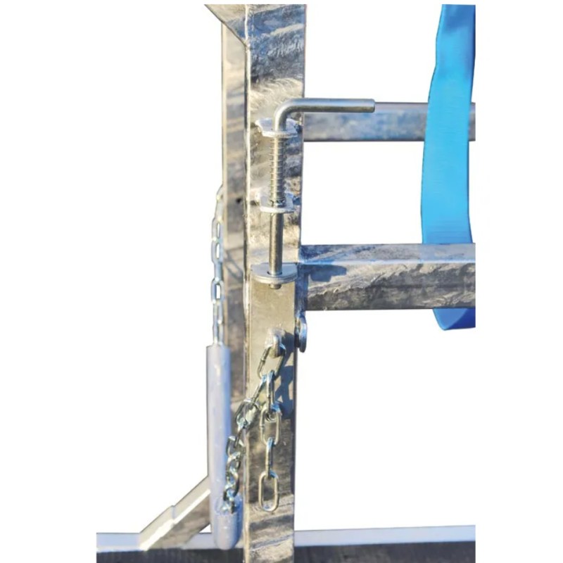 Sangle sous-ventrière en polyester long. 1450 x larg. 150 mm avec triangles, maneuvrée par un moulinet auto-freiné.