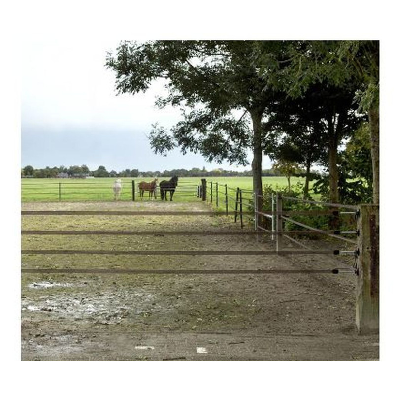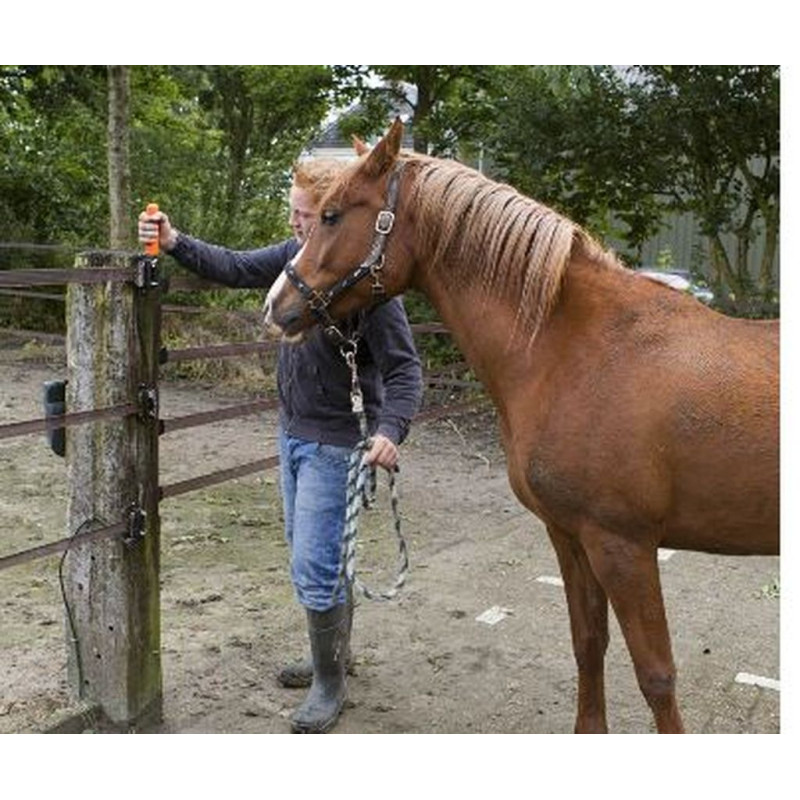 La porte électrifiée multifils tout-en-un, la plus complète et la plus facile à installer sur le marché. Cette solution offre une porte à faible coût pour pratiquement n'importe quelle largeur. Livré avec du ruban 40mm. Particulièrement adapté pour parcs à chevaux. Largeur max. 6